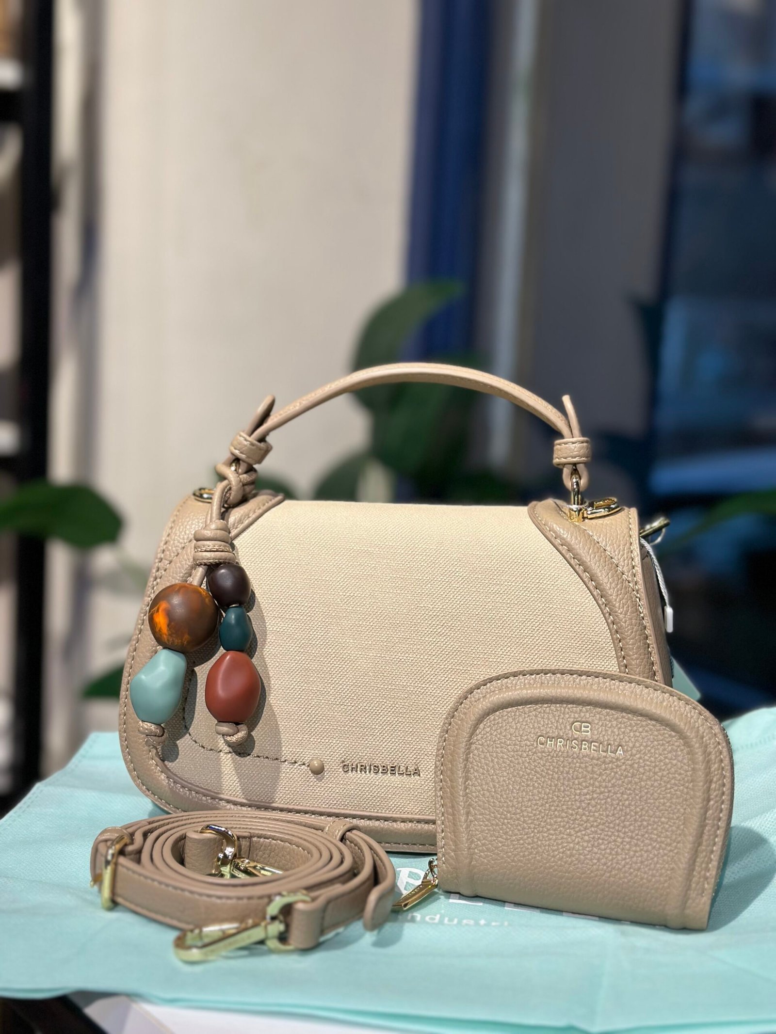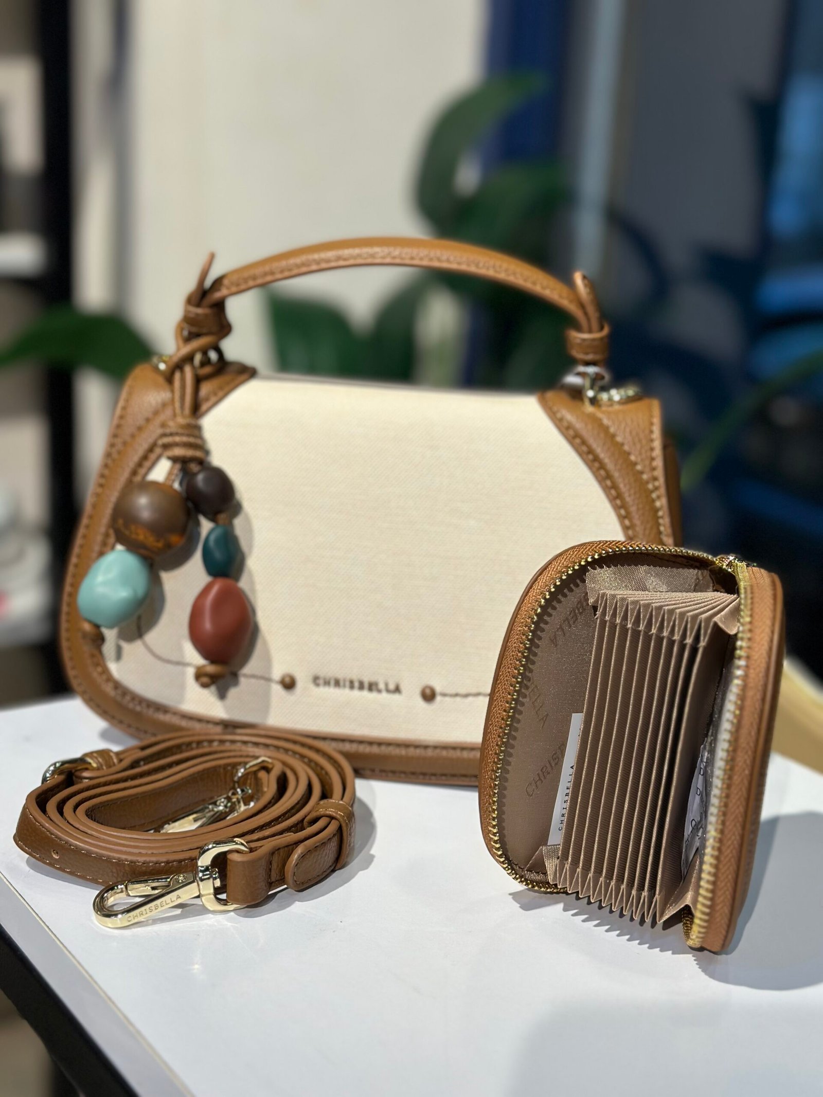 Crispella Cross-body with charm stones , paired with a sleek card holder – chic versatile , and perfect for any occasion. size 14*23